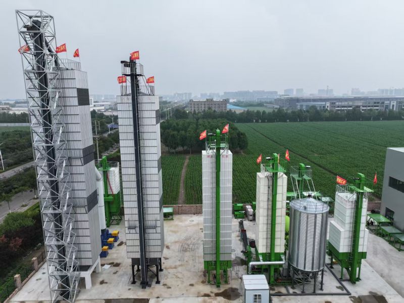 糧食烘干塔的工作原理可以詳細拆解為以下幾個關鍵步驟:進料階段:高濕度糧食(通常含水量22%-30%)通過自動化進料系統進入烘干塔進料系統通常由斗式提升機、皮帶輸送機和均布器組成提升機將糧食從地面輸送至塔頂(高度通常15-25米)均布器確保糧食均勻分布在烘干塔橫截面上熱風生成系統:核心設備包括燃燒機(燃油/燃氣/生物質)和熱風爐燃燒機將燃料化學能轉化為熱能(溫度可達300-600℃)熱風爐通過換熱器將高溫煙氣轉化為潔凈熱風(80-150℃)離心風機(功率通常15-75kW)將熱風以8-12m/s風速送入烘干塔熱風循環與分布:熱風通過特殊設計的導流板和多孔風道系統采用"順流-逆流"組合式氣流設計:? 上層高溫區(100-120℃)順流烘干? 中層中溫區(80-100℃)橫流烘干? 下層低溫區(60-80℃)逆流烘干風速控制系統確保每立方米糧食獲得均勻的風量(通常300-500m3/h·t)熱交換過程:熱風通過三種方式傳遞熱量:a) 傳導:糧食顆粒與熱風直接接觸傳熱b) 對流:熱風穿透糧層帶走水分c) 輻射:高溫壁面輻射傳熱典型熱交換效率可達65-85%水分蒸發速率:每小時降低1.5-3%含水量濕度控制系統:排濕風機(風量2000-10000m3/h)持續排出濕空氣自動調節閥根據濕度傳感器(精度±2%RH)控制排濕量廢氣溫度通常45-55℃,相對濕度80-95%部分系統配備熱回收裝置,可回收20-30%余熱分段烘干工藝:預熱段(60-80℃):糧食溫度均勻上升快速干燥段(100-120℃):大量水分蒸發緩速干燥段(80-90℃):內部水分向外遷移冷卻段(環境溫度+10℃):避免熱糧結露每段停留時間根據糧食品種調整(小麥30-50分鐘,水稻40-60分鐘)出料系統:旋轉卸料閥(轉速2-8rpm)控制出料速度在線水分檢測儀(精度±0.5%)實時監控含水量典型處理能力:連續式烘干塔每小時10-100噸能耗指標:烘干1噸糧食消耗25-45kg標煤當量整個系統由PLC自動控制,可精確調節溫度(±2℃)、風速(±0.5m/s)和停留時間(±1分鐘),確保糧食烘干均勻性(水分偏差≤0.8%),同時保持糧食品質(爆腰率≤3%,發芽率≥95%)。